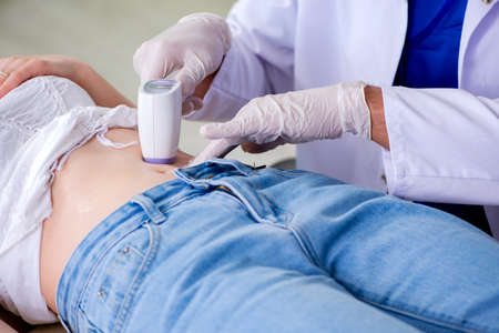 Pregnant woman visiting radiologyst for ultrasound
