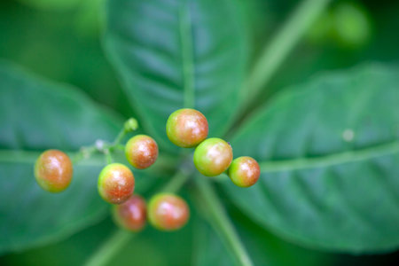 Berries of an Indian snakeroot plant, Rauvolfia serpentina