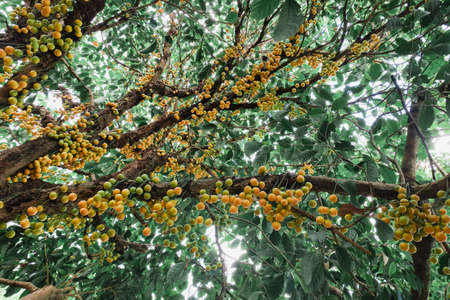 Baccaurea ramiflora Lour or Burmese grape tree , Mafai in Thai, sweet and sour fruit on tree .