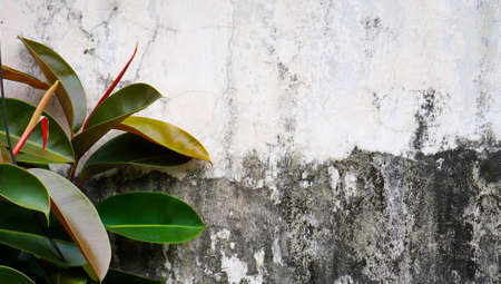 Home plant ficus or rubber plant. Dusty and neglect concept of indoor plants.
