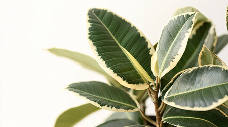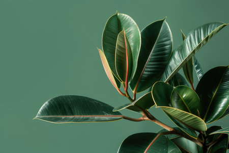 Lush green leaves of a rubber plant against a soft beige background, showcasing the beauty of indoor plants and natural decor elements in urban living.