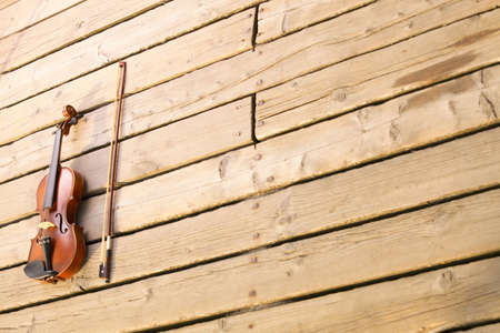 Violin on wooden background