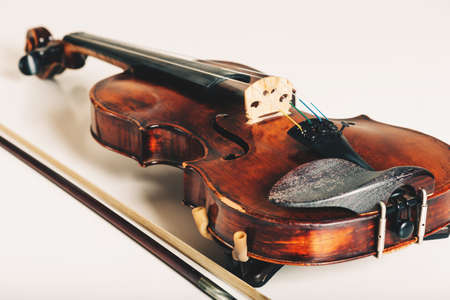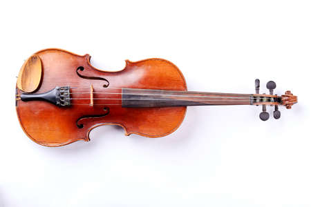 Violin isolated on white background. Studio shot of old violin. Classical musical instrument.