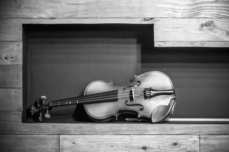 classical violin on wooden floor. music background