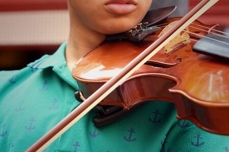 A man is playing a violin. close up