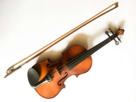 Girl playing the violin. The bow touches the strings. Close-up. View from the shoulder side through the hair. Musical theme. White background.