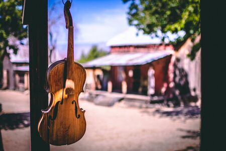 Vintage Violin infront of a old building. Ghost town California HQ