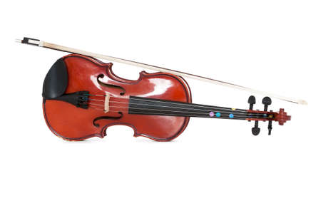 Girl playing the violin. The bow touches the strings. Close-up. View from the shoulder side through the hair. Musical theme. White background.