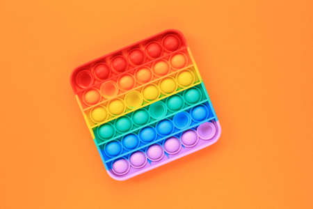 Toy on orange background with copy space. Popular multi-colored silicone anti-stress toy