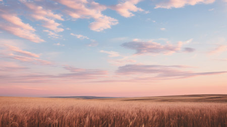 Breathtaking Abstract Sunset Landscape with Serene Floral Nature and Countryside Backdrop at Dusk