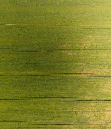 Green wheat in the field, top view with a drone. Texture of wheat green background