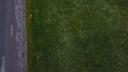 Rural landscape. Top down view of rural field meadow scene. Countryside agriculture field meadow landscape. Country landscape aerial fields meadow. Panoramic country view of aerial nature scenery.