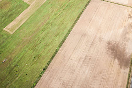 Agricultural fields aerial view. wide meadow landscape. grass abstract texture
