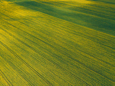 Aerial drone view of beautiful yellow field of Rapeseed.