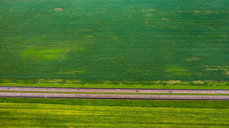 Top view of the sown green in Belarus.Agriculture in Belarus.Texture.