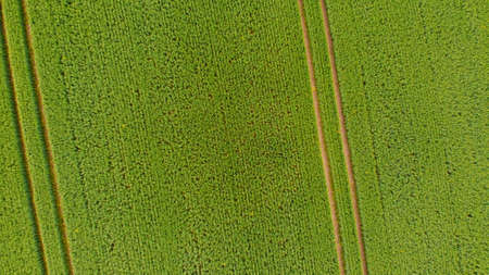 Land or landscape of green field in aerial view. Green field, crop, agricultural plant.