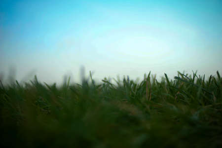 Field of green grass and blue sky