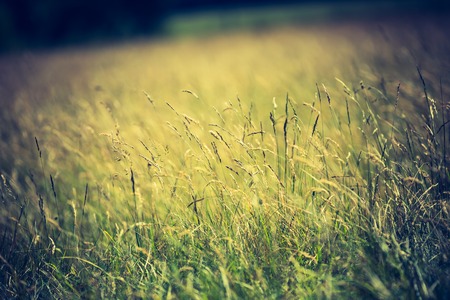 Vintage photo of grass ears on meadow. Beautiful wild autumnal plants