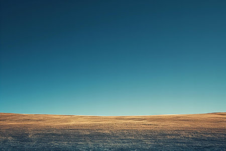 Golden grass stretches endlessly across the land, with a bright blue sky and gentle clouds creating a serene atmosphere around the horizon.