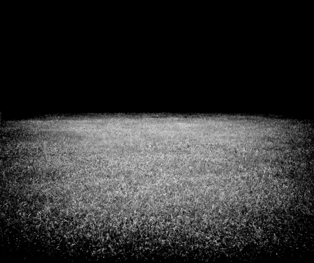 Soccer field or football field with green grass and lights at night