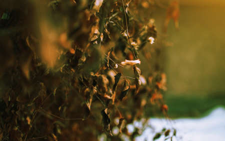 background of dry leaves of a plant in autumn in the sun. Template for design. Copy space.