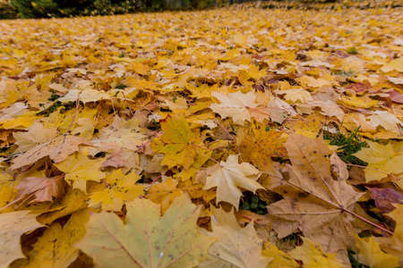 fallen leaves on the ground in the park in autumn for background or texture use. Natural autumn background.