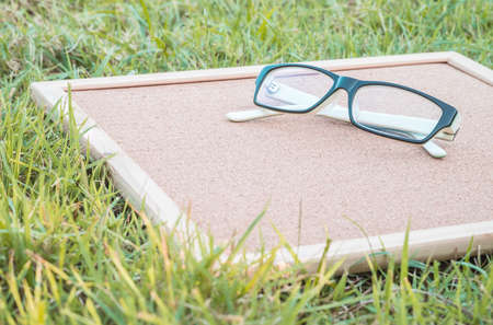 book on the grass in the park, glasses, close-up, the concept of summer vacation, reading literature in nature, rest and study