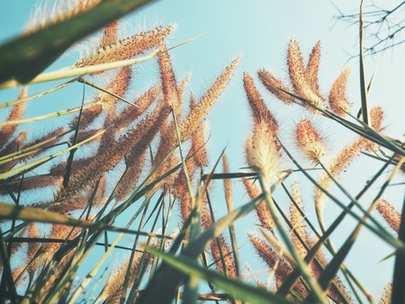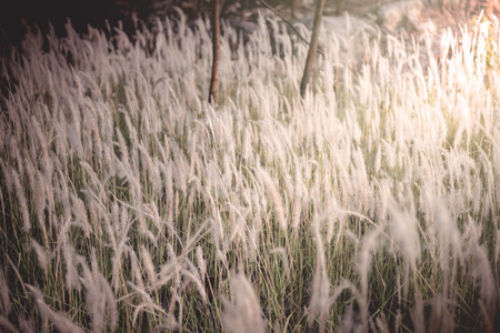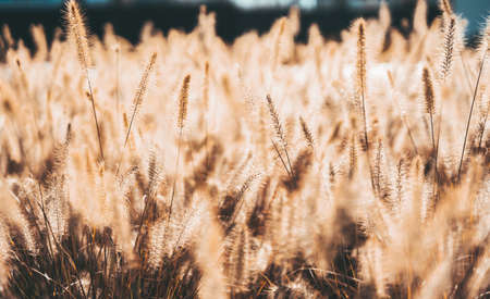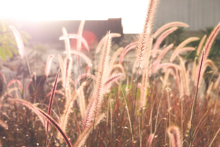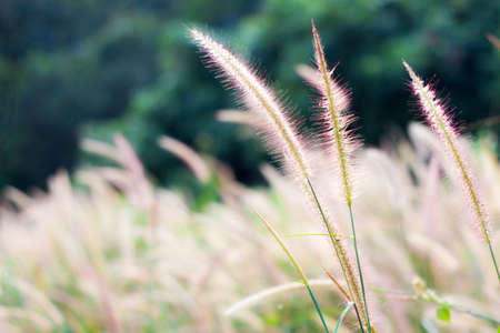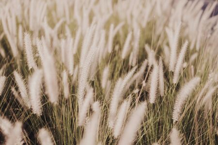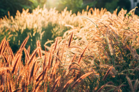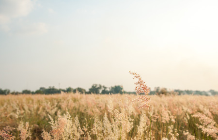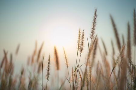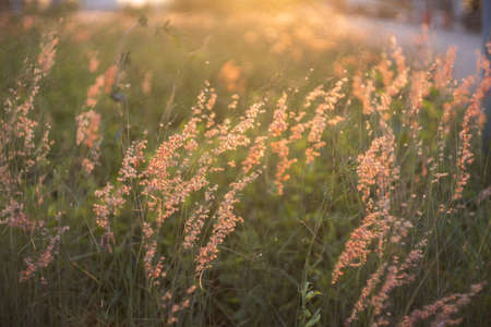 Beautiful grass flower field and light of sun. Background and texture concept.