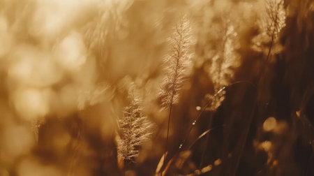 A serene image capturing tall grass illuminated by warm sunlight during the golden hour, showcasing the natural beauty and tranquility of the outdoors.
