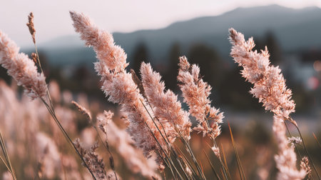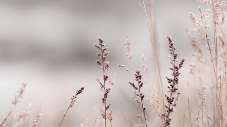 A serene image of soft grass stems displaying delicate hues of beige and brown, beautifully set against a soft blurred backdrop, evoking tranquility and natural beauty.