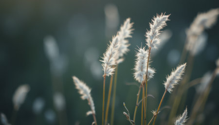 Soft, feathery grass blades dance gracefully against a blurred green backdrop, capturing the essence of tranquility. This serene image evokes a sense of calm and connection to nature, inviting viewers to pause and appreciate the beauty of the outdoors.