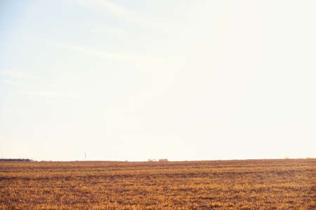 Golden ears of dry grass on a rural meadow. Agriculture concept. The field is preparing for the sowing of wheat next year. Toning