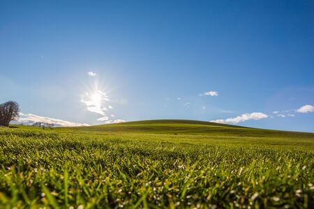 Rolling Green Fields and Blue Sky on a Bright Sunny Day