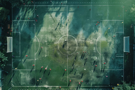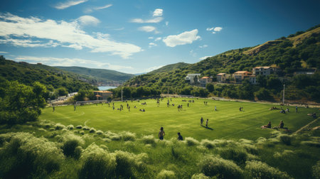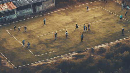Generative AI : Aerial view of people playing in a soccer field in Ripacandida Potenza Basilicata Italy