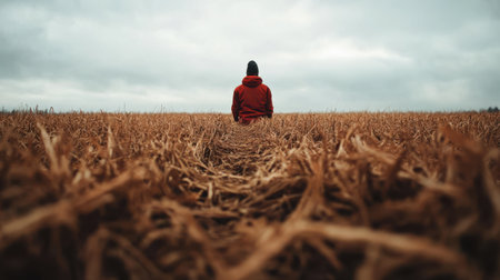Man with his back turned in the middle of rushes. Autumn fall. Copy space. Inspirational concept