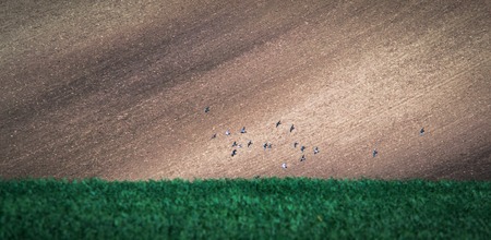 Spring sown field abstract eco background. Summer hill amazing paysage wallpaper. South Moravia, Czech Republic