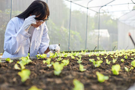 Geneticists, biologists, and scientists are studying the genetic structure of vegetables in a nursery.
