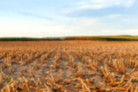 agricultural field, which collected mature corn crop, beveled stems plant closeup defocus
