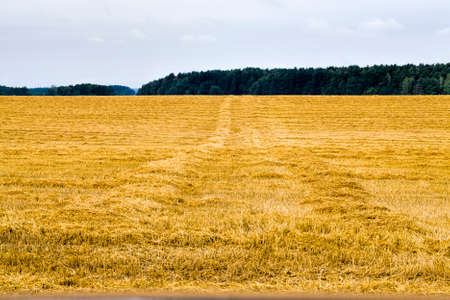 Mowed field of wheat stubble of mowed field