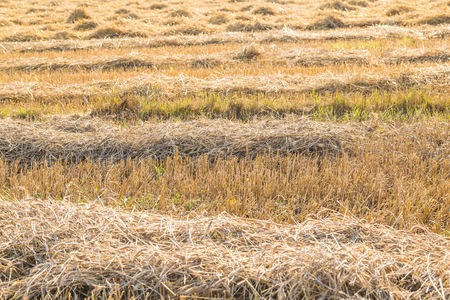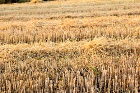 Rice straw in the rice field after harvesting.