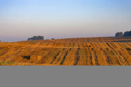 Stubble field landscape. Polish after harvest landscape