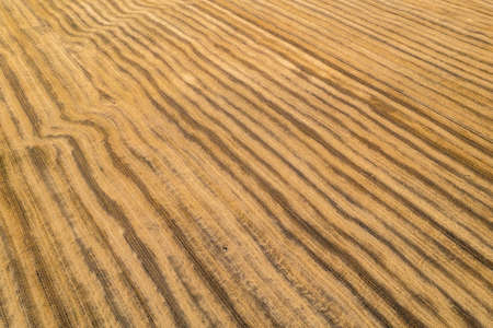 View from above field after harvest. Incredible landscapes and textures. The dug-up strips left by the combines form geometric lines stretching parallel to each other to the horizon