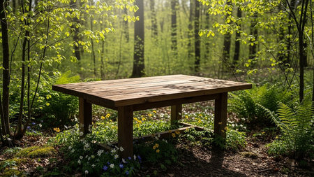 AI Generated. Table Top And Blur Nature of the Background Mock Up Template