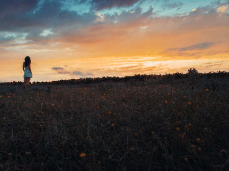 Girl enjoy dreamy landscape