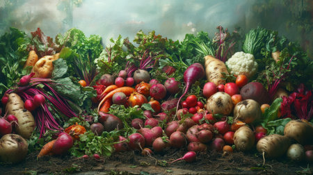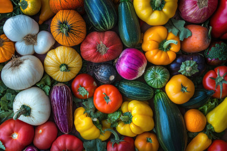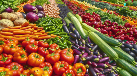 A vibrant display of fresh organic vegetables showcasing a variety of colors and textures. Perfect for promoting healthy eating and farm-to-table concepts.