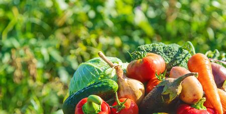 Harvest in the garden. Organic vegetables. Selective focus. nature.