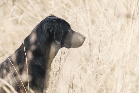 Hunting dog in tall grass. German Shorthaired Pointer.