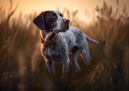 German shorthaired pointer. Hunting dog in the field. Generative AI