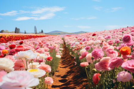 Blossoming Beauty: Vibrant Red, White, and Pink Flower Fields under the Radiant Daytime Sun - Aspect