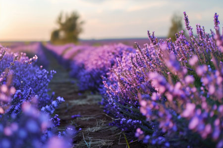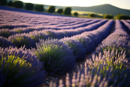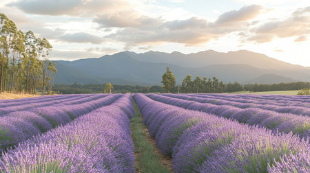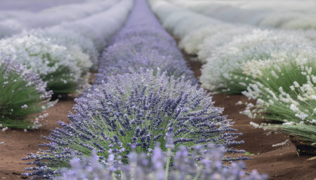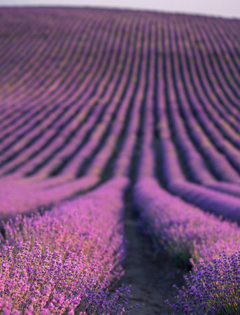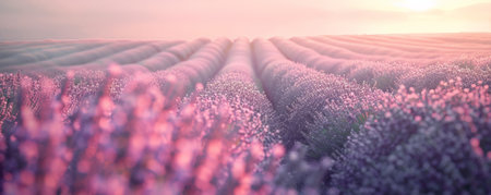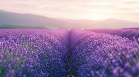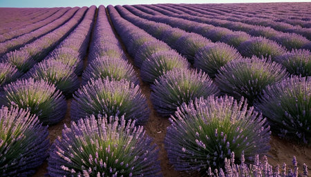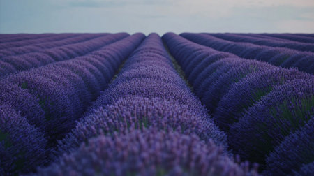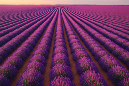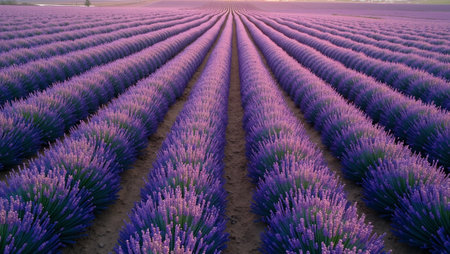 Tranquil lavender field in full bloom endless rows of purple against earthy tones